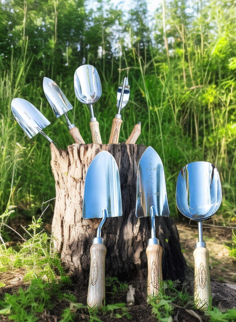 Color: Pala puntiaguda de acero inoxidable | 345x68, Pala de cabeza redonda de acero inoxidable | 341x85, Pala para tierra de acero inoxidable | 340x90, Rastrillo triangular de acero inoxidable | 272x85, Extractor de raíces de acero inoxidable | 350x51, Desmalezadora de acero inoxidable | 338x75, Tijeras para flores de acero inoxidable | 200x50, Delantal de rayas de Oxford | 450x450, Bolsa de flores de rayas de Oxford | 380x250, Juego de 9 piezas de acero inoxidable Shuiqu | 350x120x120
